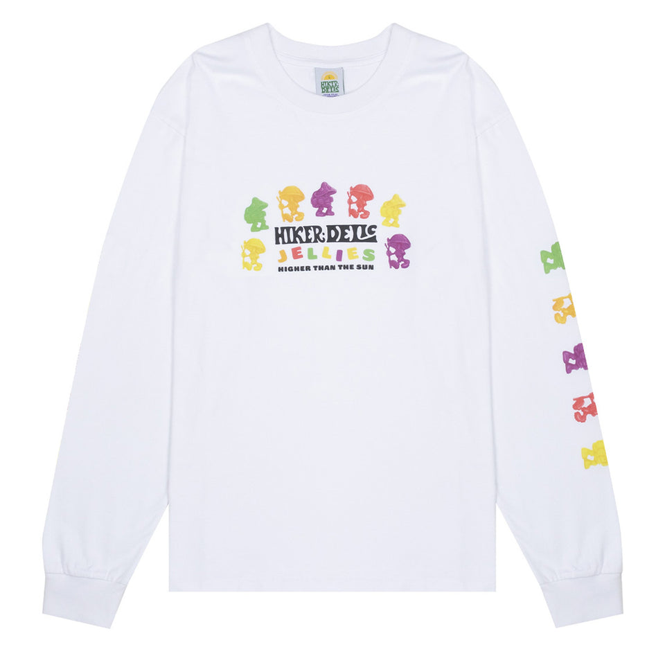 Hikerdelic's SS23 collection brings a playful twist to graphic tees, including this Higher Than the Sun long sleeve tee. The Manchester-based brand showcases vibrant and whimsical characters throughout the body, while the unique visual style, created in collaboration with talented illustrators, adds a cohesive touch to the chest design.