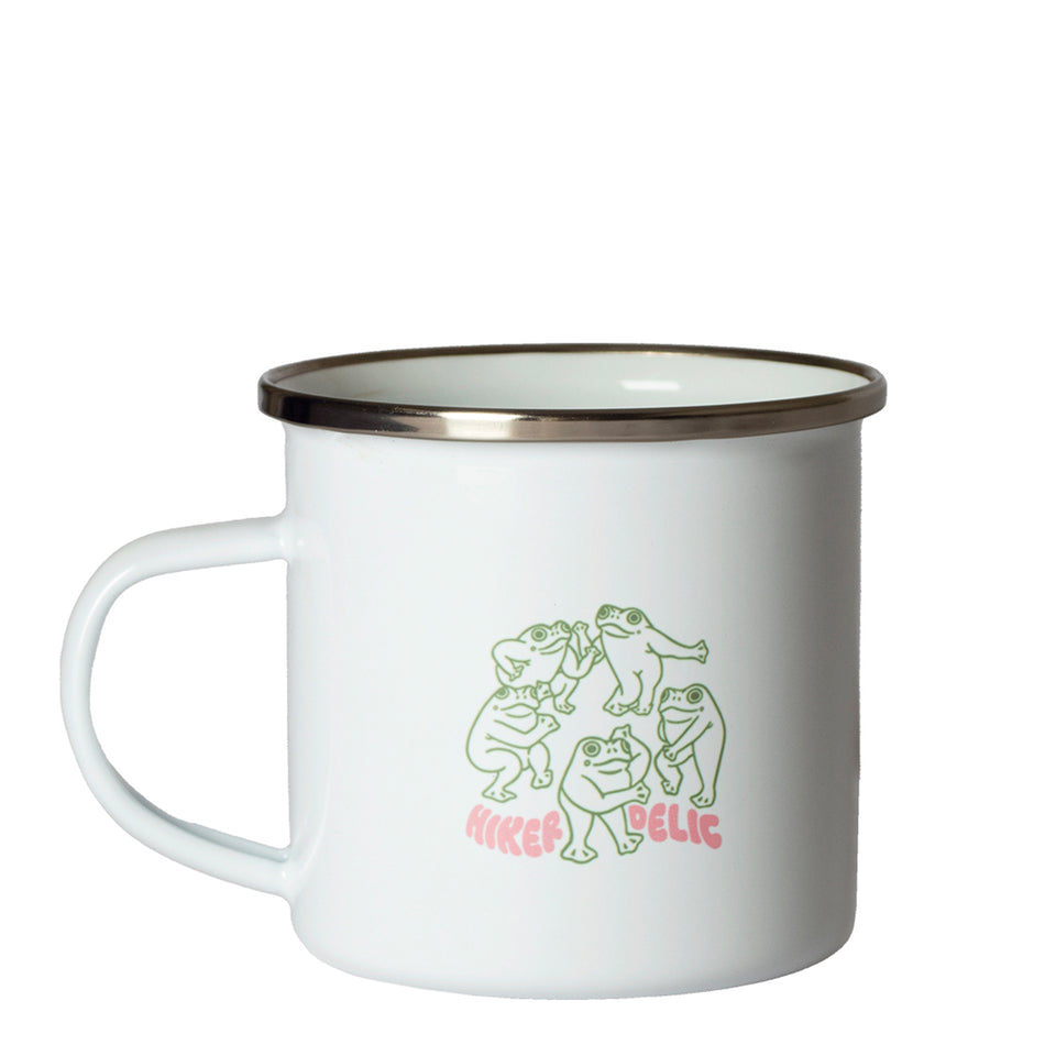 Ever heard of boiling frog syndrome? Quite a clever way to describe a slowly developing disaster that isn't it? Nothing to do with Hikerdelic's own Kaeru frog design, but if you're after boiling a frog, use this enamel mug on your hikes, jaunts, travels or just on your sofa watching Ancient Apocalypse or whatever it is you like.