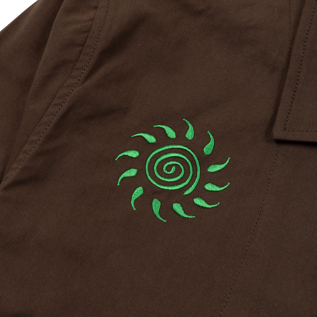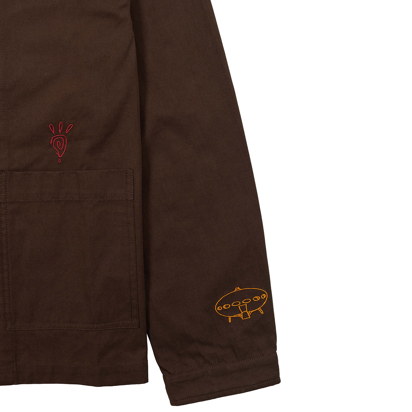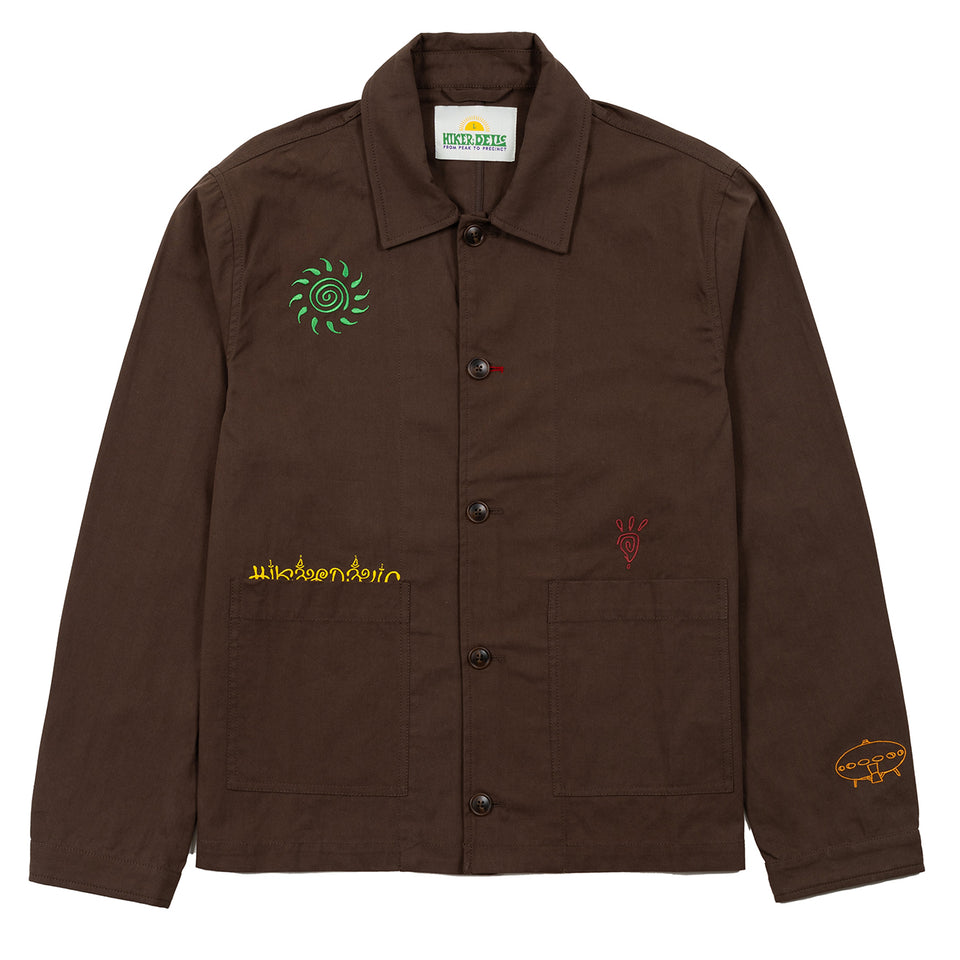 The Hikerdelic Prana Chore Jacket in Sepia is inspired by vintage workwear with a mystical touch. Named after the spiritual energy Prana, this regular-fit jacket features unique graphics and references the Futuro phenomenon, blending heritage style with creative design. Perfect for those seeking outerwear with character and meaningful style.