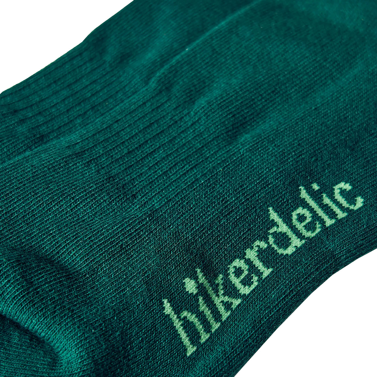 The Hikerdelic Trip Socks in Dark Green are a distinctive addition to the Sporeswear collection, featuring the signature rooted mushroom motif for a unique style statement. Crafted from a comfortable blend of 95% cotton and 5% elastane, they provide a soft, flexible fit that moves with you.