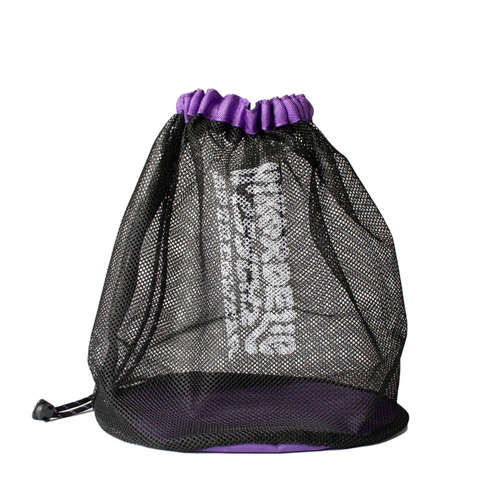 The Hikerdelic x Psychi Shoe Bag in Black and Purple is designed to keep your climbing shoes clean and organized. Made from durable black mesh material, it effectively conceals marks while allowing your shoes to breathe. This functional and stylish bag is an essential accessory for climbers looking to maintain their footwear in top condition.