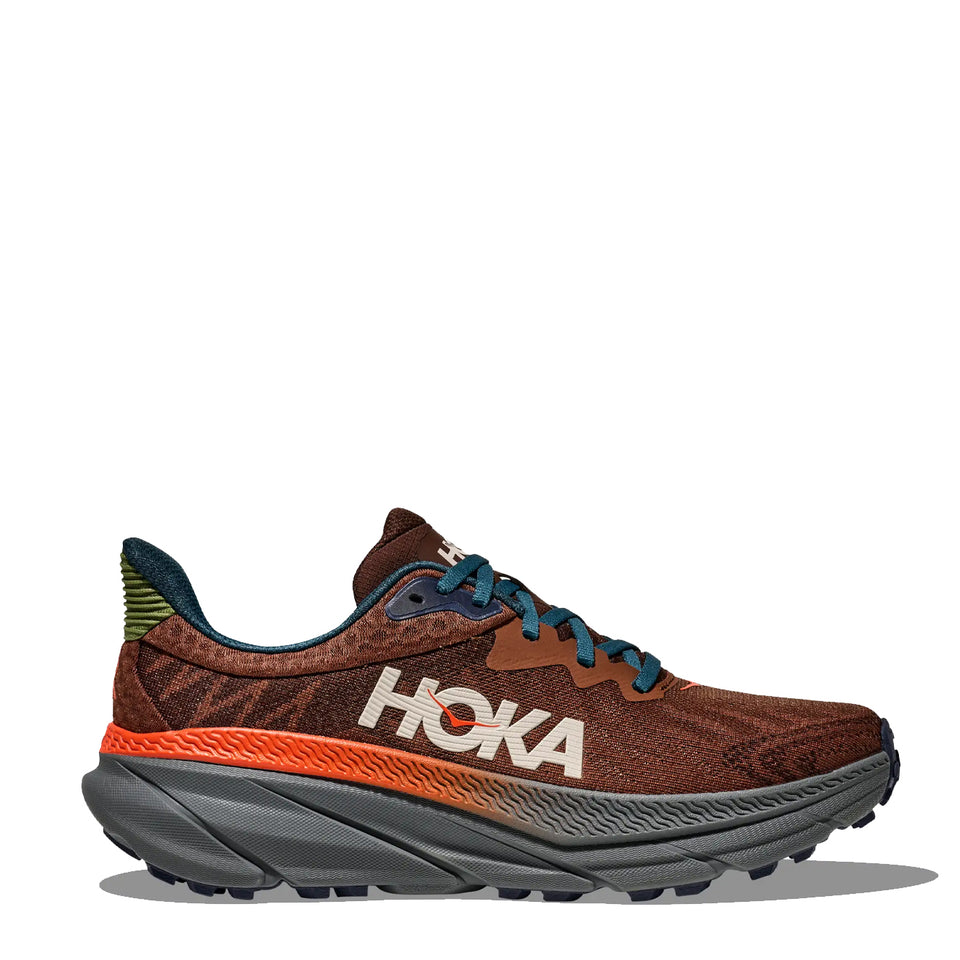The Hoka Challenger ATR 7 Trainer in Mineral Brown / Asteroid has been completely reimagined to excel across both road and trail. Featuring a streamlined mesh upper and a softer, higher-stack foam, it delivers superior comfort and cushioning. The updated outsole, inspired by gravel tires, integrates proprietary rubber with smaller, tightly spaced centre lugs for smooth transitions and larger, more aggressive perimeter lugs for enhanced traction on uneven terrain. Designed for ultimate versatility, the Challenger ATR 7 is built to tackle any adventure with ease.