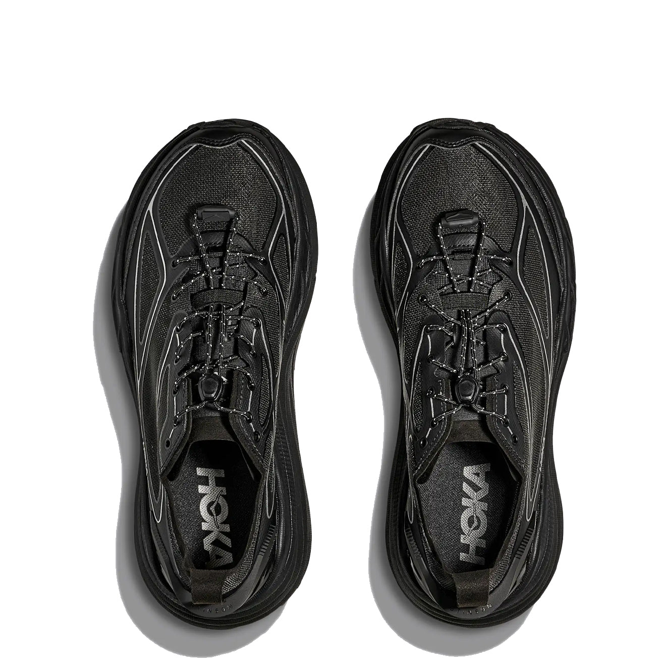 The Hoka Stinson 7 Trainer in Black and Silver blends trail performance with everyday wear, offering a stable and comfortable feel underfoot. Designed to move easily between outdoor routes and daily use, it combines supportive cushioning with a lightweight build. Practical details and a distinctive upper give it a considered look without sacrificing function.
