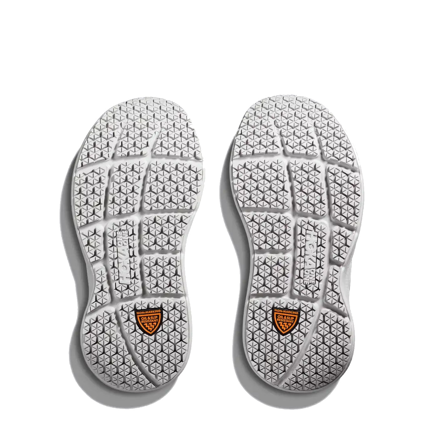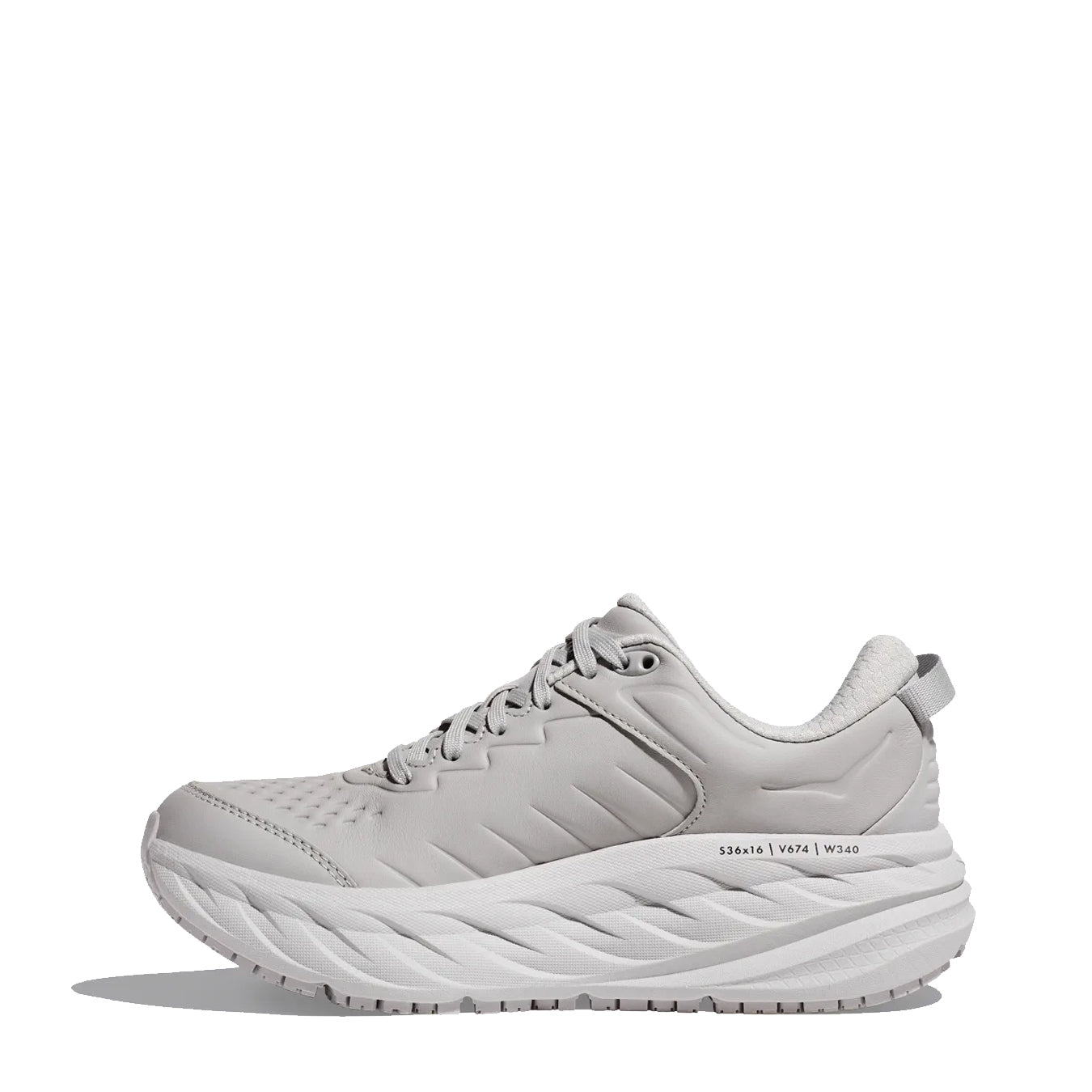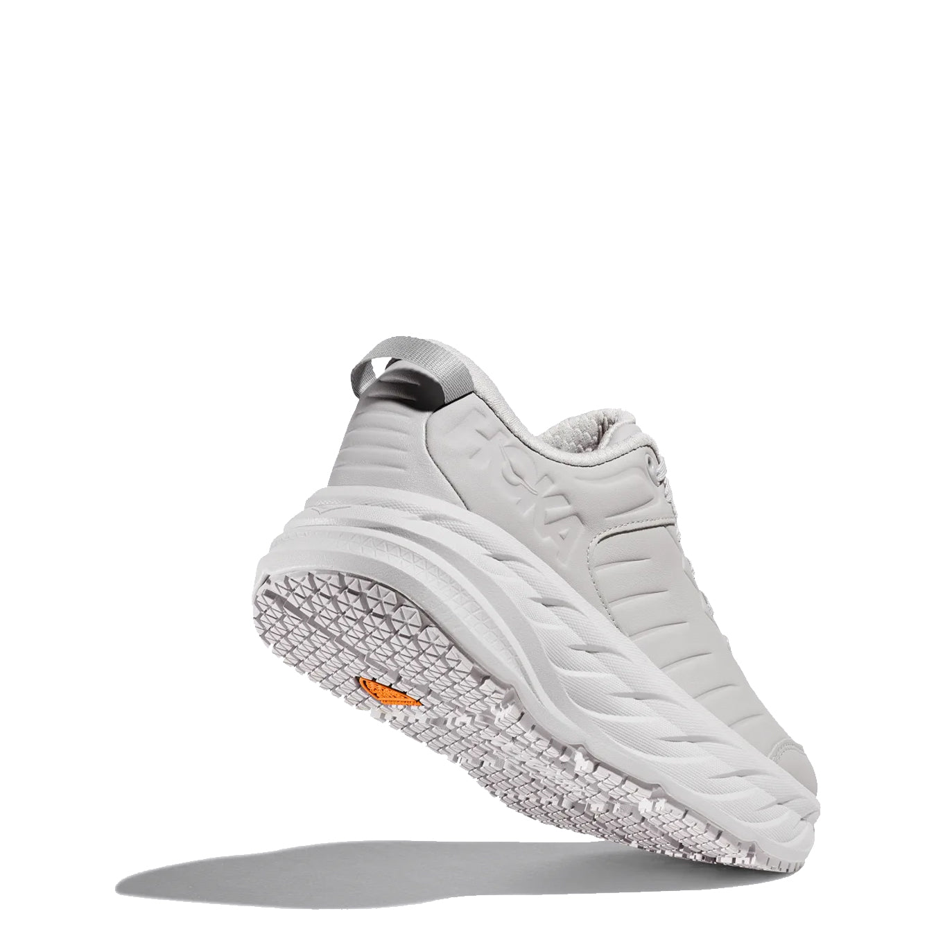 The Bondi SR in Harbour Mist / Lunar Rock takes the most cushioned shoe in the HOKA road-shoe lineup and reworks the silhouette to handle the demands of daily life. Updated with water-resistant leather, a slip-resistant outsole and EVA midsole to ensure all-day cushion, this workplace warrior features an ultra-grippy, full ground contact rubber that stands up to the demands of the service industry and medical field alike.