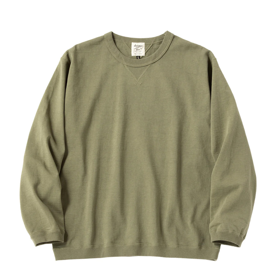 The Jackman Dotsume Rib L/S T-shirt Olive is a heavyweight long sleeve tee made from ultra-dense 11.5oz Dotsume jersey cotton. Knitted on traditional loopwheel machines without automation, this tightly woven fabric delivers exceptional durability and a distinctive sweatshirt-like drape. Designed to hold its shape and conceal sweat or body lines, this updated silhouette offers breathability and comfort in transitional weather thanks to its structured knit and ribbed detailing.