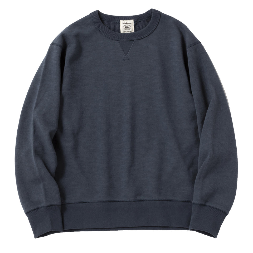 The Jackman GG Sweat Crewneck in Night Bench is crafted from heavyweight cotton, offering a unique textured appearance and a fit that becomes even more comfortable with wear. Featuring a relaxed, slightly oversized silhouette, it combines traditional details like a heritage-inspired 'Single V' collar insert with modern craftsmanship. Ribbed cuffs and waistband ensure a snug fit, while the woven cotton brand label underscores its premium quality.