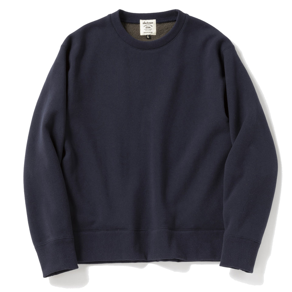 The Jackman Nap Sweat Crewneck in Navy features a uniform navy colour throughout and is crafted with a cotton front and acrylic back. Its brushed, nap-raised fleece texture resembles boa fabric for a unique feel. Designed for comfort and style, it includes set-in raglan sleeves for enhanced mobility and covering stitching that conceals seam allowances for a polished finish.
