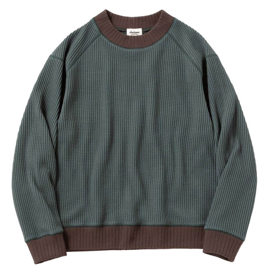 Jackman Waffle Mid-neck Ivy / Wood is a cosy essential designed for ultimate comfort, featuring a soft, textured waffle fabric that offers warmth without feeling too heavy. Its relaxed fit allows for effortless layering, making it an ideal choice for cooler days while maintaining a clean, refined look.