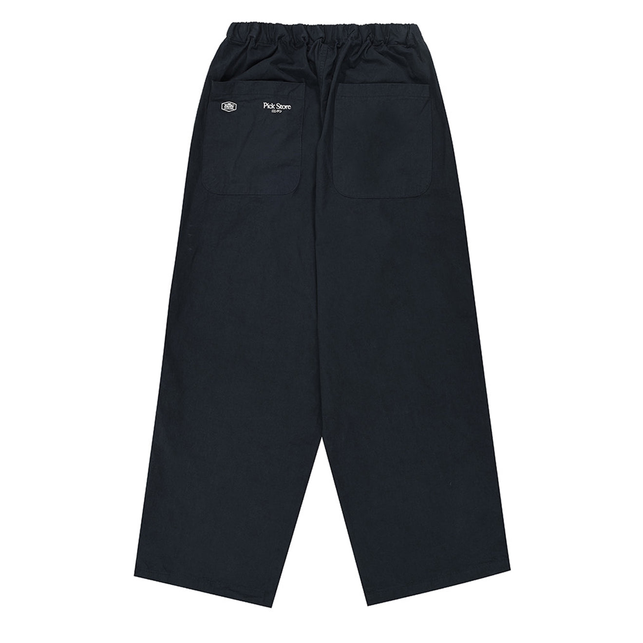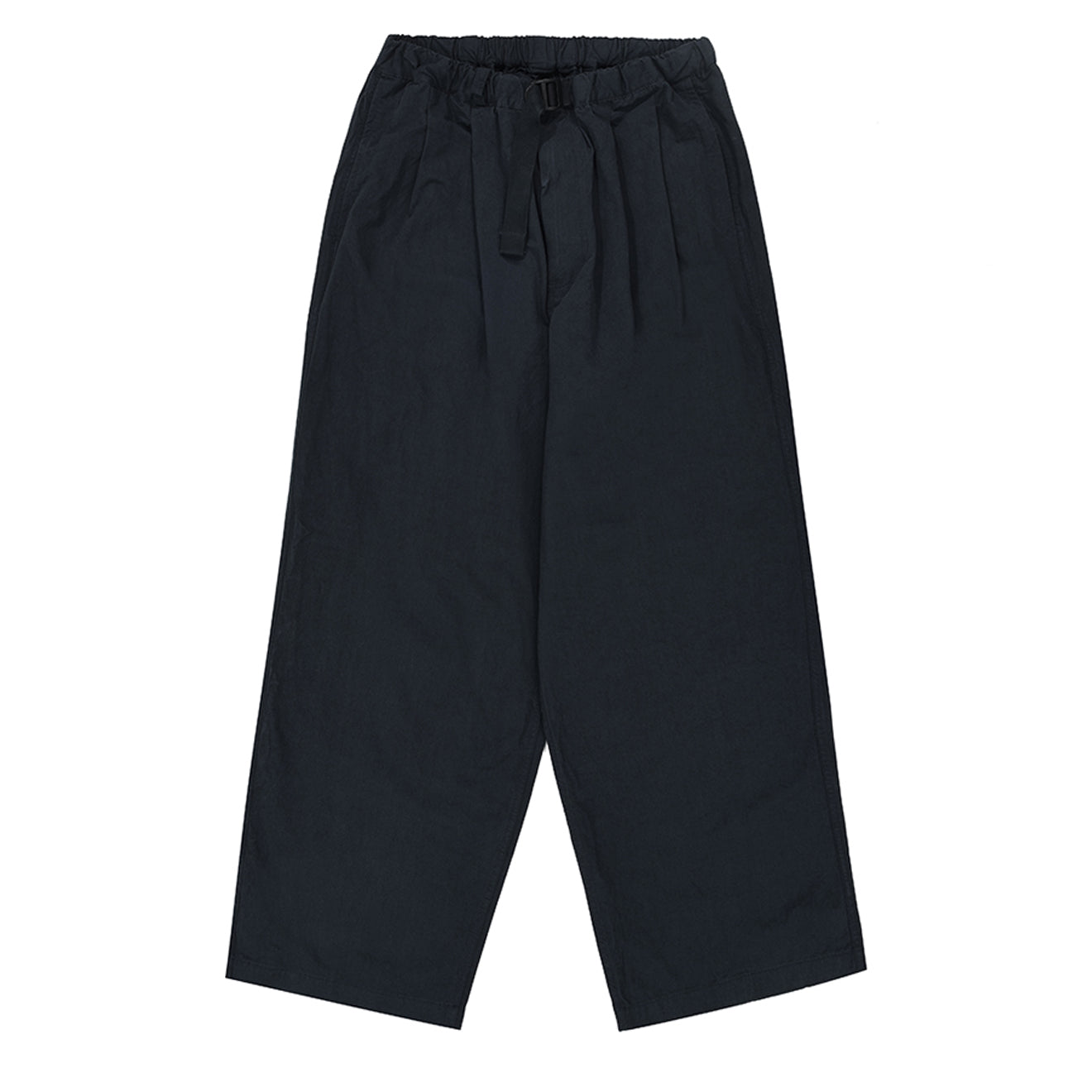The Kappy Two Tuck Wide Pants Navy are made from 100 percent cotton with a wide relaxed fit designed to suit all sizes and body types. Featuring a genderless one size silhouette, they include an elasticated waistband with integrated buckle, zip fly, two side pockets and a collaborative patch on the back pocket. Combining comfort and versatility, these trousers are perfect for effortless everyday style.