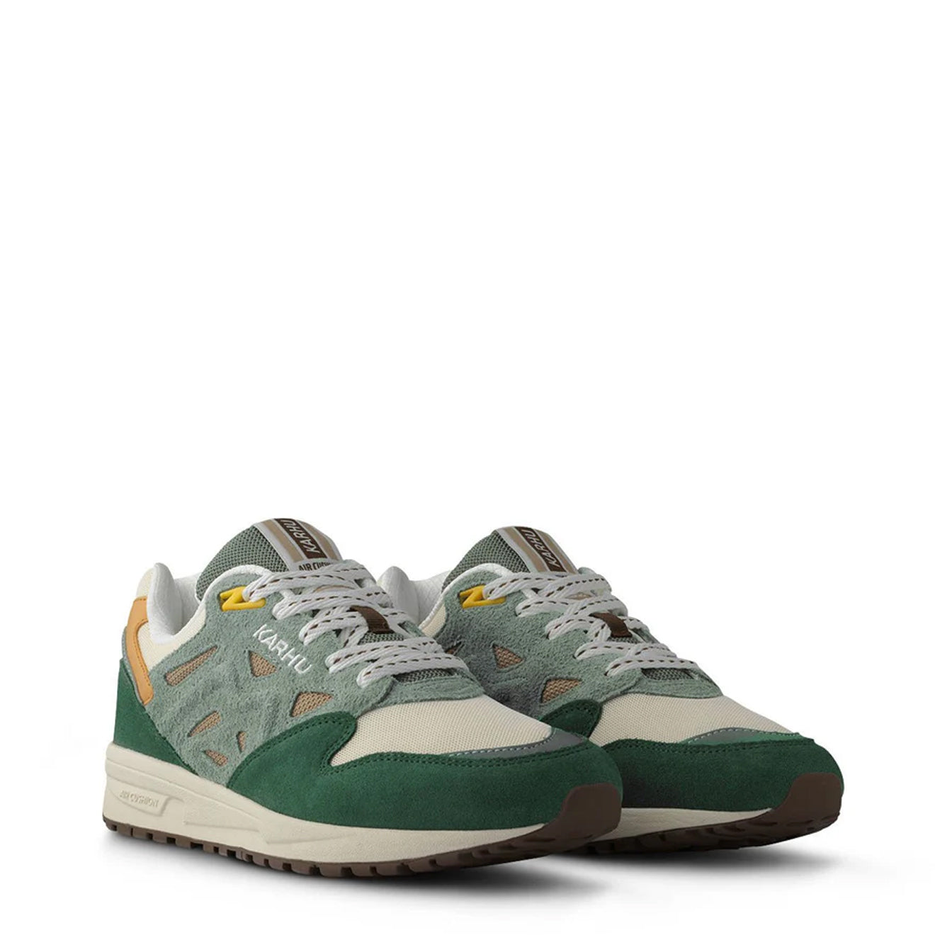 - Embroidered Karhu logos and woven tongue label