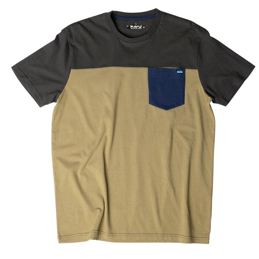 This 100% organic cotton jersey pocket tee blends KAVU's decades-long love for color blocking with our life-long love of the great outdoors. Casual fit, short sleeve crew neck color blocked t-shirt, front and back yoke seam styling, chest pocket, heat transfer back neck label.