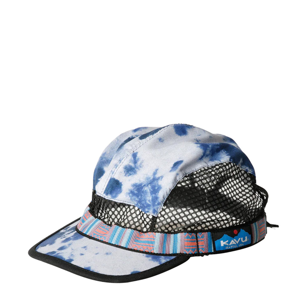 All the features of a Synthetic Strapcap but tailor-made for trail running. Mesh panels for breathability and a shorter brim for maximum visibility. Get burly early and watch out for that branch! 5-panel design, ventilation mesh panels, slight curved bill, black underbill, patterned nylon tubular webbing with KAVU adjustment with our popular Coolmax sweatband on the interior.