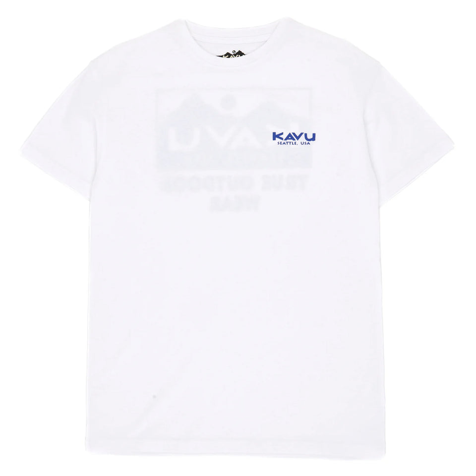 The KAVU True Gradient Short Sleeve Tee in White blends bold style with everyday comfort. Made from 100 percent cotton, this regular-fit tee features a vibrant gradient KAVU logo on the back and a smaller logo on the chest. Part of an exclusive European capsule collection, it embodies the adventurous spirit of KAVU in a clean and classic design, perfect for casual wear.