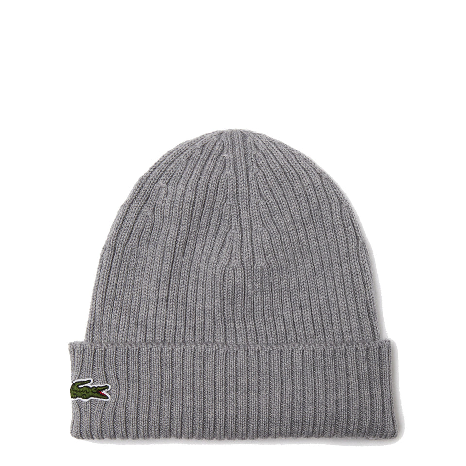 Lacoste Rib Knit Brushed Wool Beanie Heather Agate