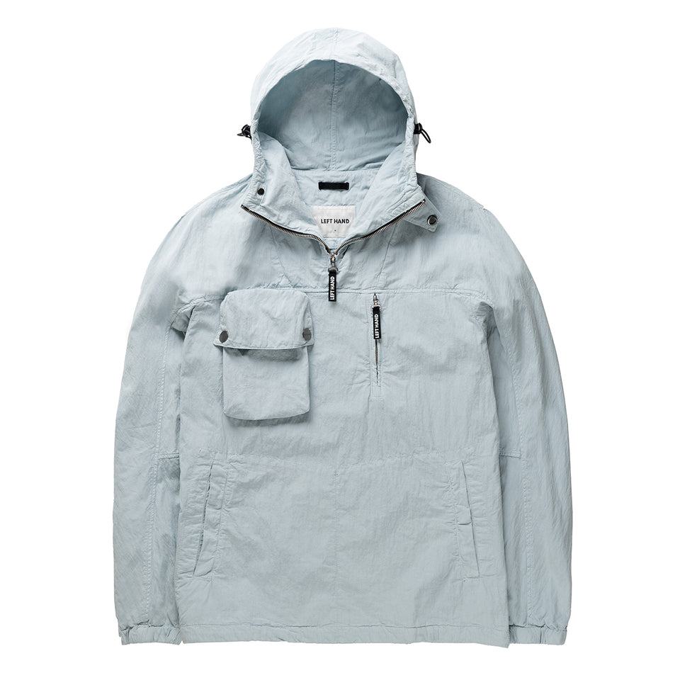 The Adda Smock is an overhead jacket inspired by Swiss Military wear, featuring oversized and concealed pockets, finished with branded zip pull and snap closures. The side zip and neck fastening allow easy access. Crafted from an organic cotton and Nylon mix for a soft handle, garment dyed and finished in Italy. This quality piece features stitching detail throughout, and is signed off on the left sleeve with an embroidered tonal logo
