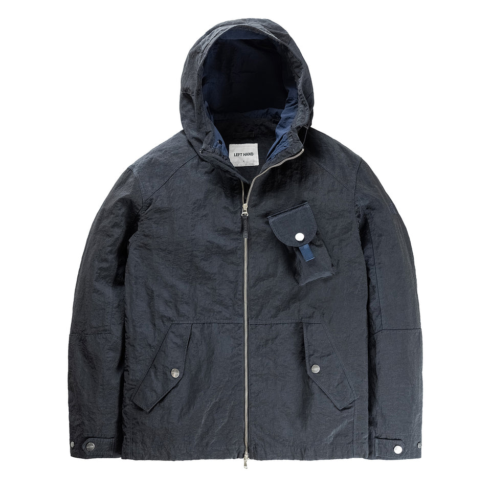 Hooded Anorak crafted from GRS certified 100% recycled Nylon, inspired by Canadian MK-II field jacket. Features tonal Left Hand branding on the sleeve, zip front with branded recycled zip pullers and snap adjustable cuffs. This anorak, in typical Left Hand fashion, is garment-dyed in Italy to increase texture. This piece is an excellent example of how Left Hand continues to reinvent classic staples with unique touches and design features.