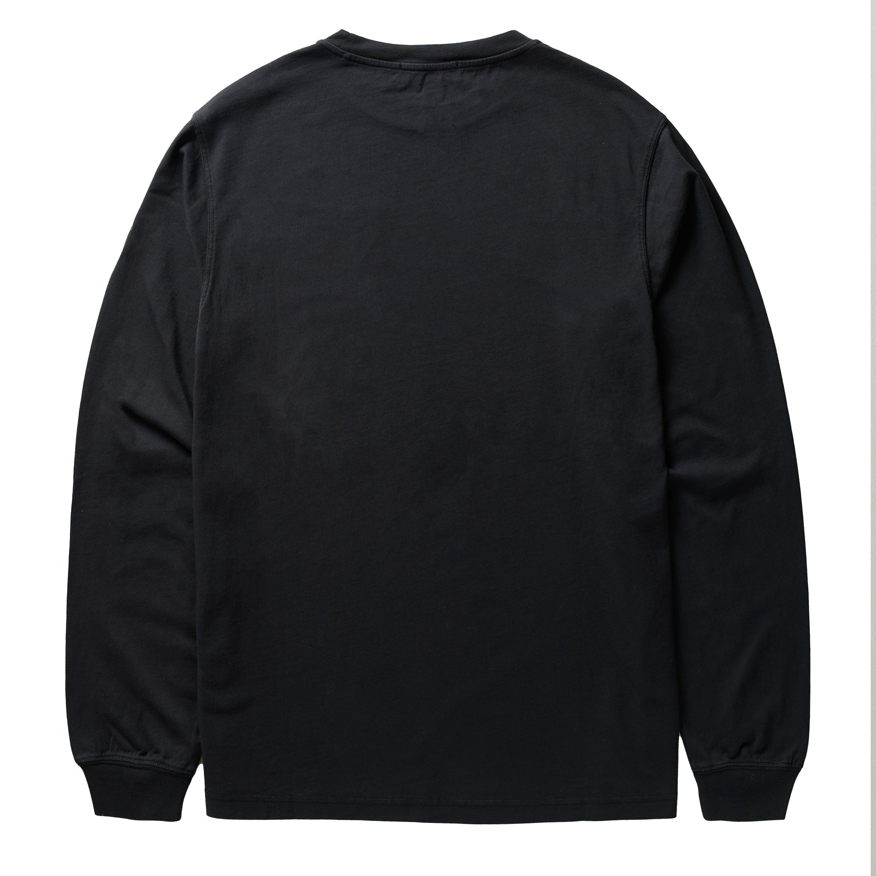 The LS pocket tee has been garment dyed in a 180gsm 100% organic cotton jersey with a carbon brushed finish for a soft touch. It features a cotton ripstop patch pocket with button fastening, mirroring the Austrian Anzug 03 Alpine combat jacket style lines. Small tonal logo to the LHS sleeve. Regular fit.