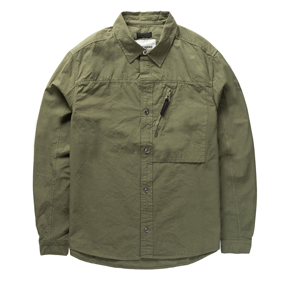 A great example of how Left Hand takes classic staples reinterpreted with design tweaks and material care, the mid weight Zip Pocket shirt will look great all year round. Crafted from 100% organic cotton and garment dyed in GOTS certified dye house, this compactly woven quality piece features a button-down fastening and classic pointed collar. Featuring a chest pocket with a lampo zip and recycled branded zip puller. In classic Left Hand style, featured on the sleeve is tonal Left Hand branding which demonstrates Left Hand’s approach to understated branding. An ideal versatile piece that can be worn as a shirt or as a mid-layer overshirt.