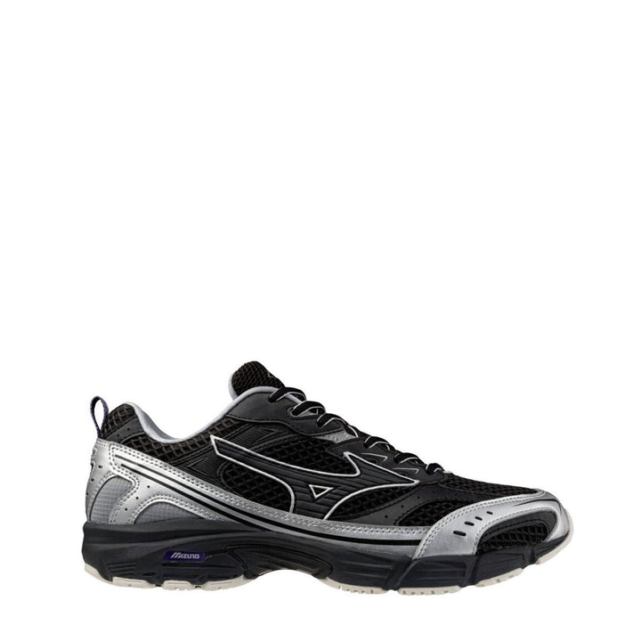 The "MILLENNIUM PACK" Mizuno Womens MXR Millenium Trainer in Black / Black Sand / Purple Haze, is a fashionable and 2000s-inspired trainer.
