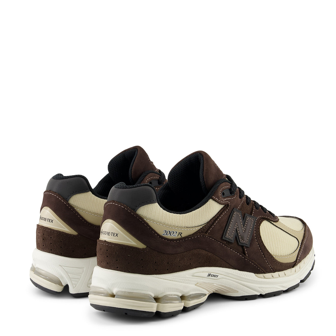 Introducing the New Balance 2002RX in Black Coffee / Sandstone / Stoneware. The forward-thinking style of the 2002R is rooted in performance running. Inspired by the MR2002, a high-end running model originally released in 2010, the 2002R offers a ready-to-wear take on sleek, technical design. A new GORE-TEX® variant, the 2002RX, adds rugged, water resistant functionality to the shoe's classic mesh upper construction, while the diamond patterned ABZORB midsole and segmented ABZORB SBS pods at the heel provide an ultra-soft, cushioned feeling and a visually distinctive look.