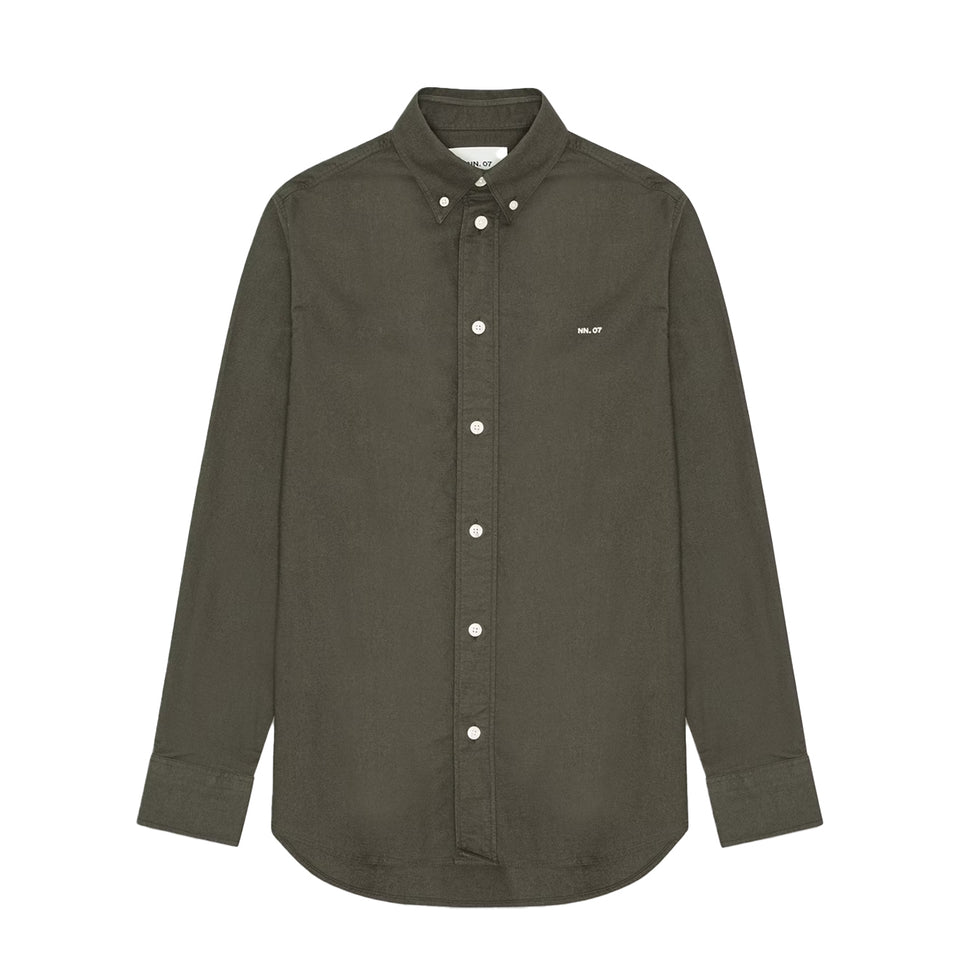 NN07 Colby BD Logo Regular Fit Oxford Shirt Dark Army