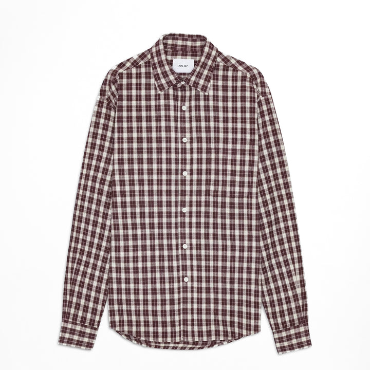 The NN07 Deon Flannel Shirt is crafted from soft cotton with a flannel twill weave for a warm, comfortable feel. It features a single patch pocket and a rounded hemline for a relaxed, easygoing fit. This shirt works well layered over tees or worn alone for a casual, polished look.