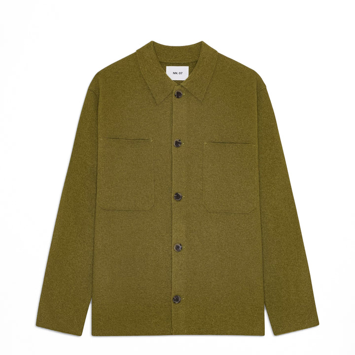 The NN07 Jonas Overshirt is crafted from soft, lightweight boiled Merino wool for a cozy, relaxed feel. It features a traditional shirting collar, raw edge details, and NN07 logo buttons. Perfect for layering, this overshirt adds subtle texture and warmth to any outfit.