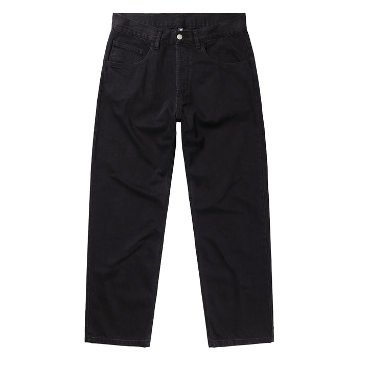 The No Problemo Bagi Jean Black is a unisex vintage-cut denim inspired by 90s skate style, designed to be worn with a super baggy fit. Made from 100% cotton denim, it offers durability with a relaxed feel.
