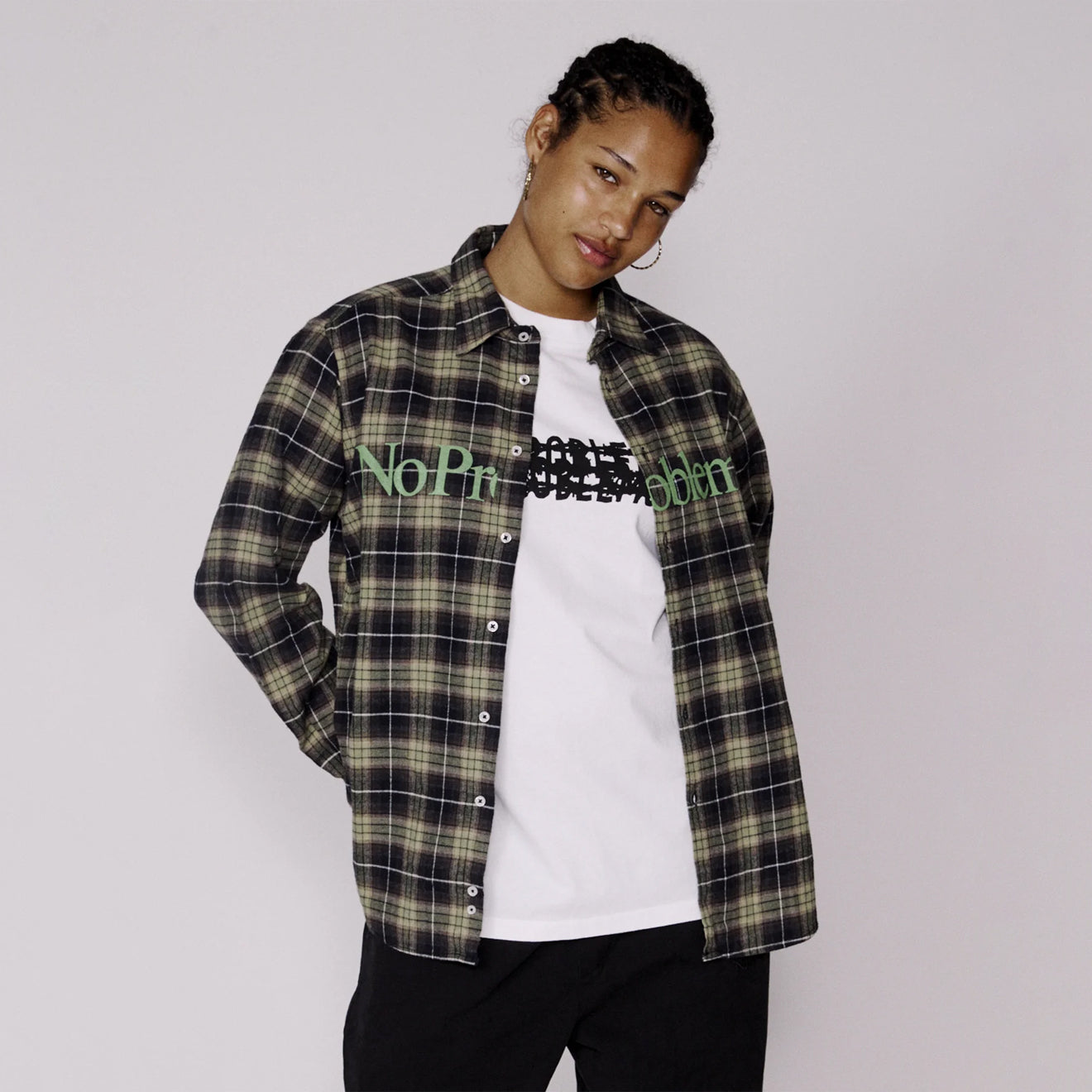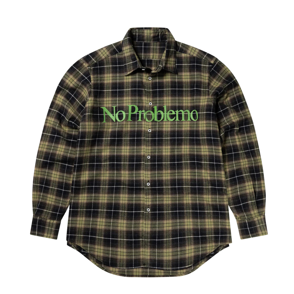 This shirt in green is made from soft cotton in a yarn dyed check with a structured feel. This shirt in green has a relaxed silhouette with subtle logo details from the Aries No Problemo range. This shirt in green is a versatile piece that stands out while remaining easy to wear.