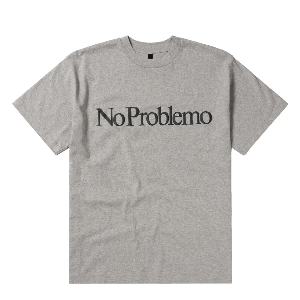 The No Problemo Short Sleeve Tee in Grey Marl is a unisex T-shirt made from heavyweight cotton jersey, providing both comfort and durability. It features a classic 'No Problemo' graphic screen print on the front for a timeless, casual aesthetic.
