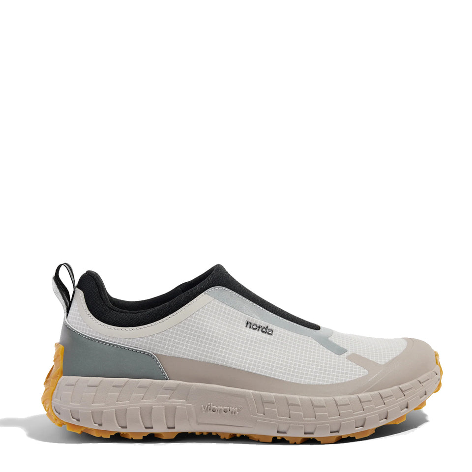 The Norda 003 in Cinder is a durable, supportive approach shoe designed to transition seamlessly between hiking, scrambling and running. This laceless approach shoe utilizing a customized Vibram® midsole and soleplate as its foundation allows for long days on feet with uncompromising traction. A Bio-Dyneema® upper with an added elasticized Bio Dyneema® allows for a fit that remains unchanged over time. Between a padded heel collar and reversed heel tab is a pull tab through which the shoes can easily be clipped to a pack. Excels on adventures of all conditions and duration. No wrong approach.