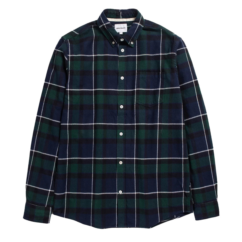 Norse Projects Anton Brushed Flannel Check Shirt Black Watch Check