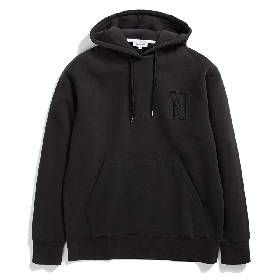 Norse Projects Arne Relaxed Organic Brushed Fleece N Logo Hoodie Black