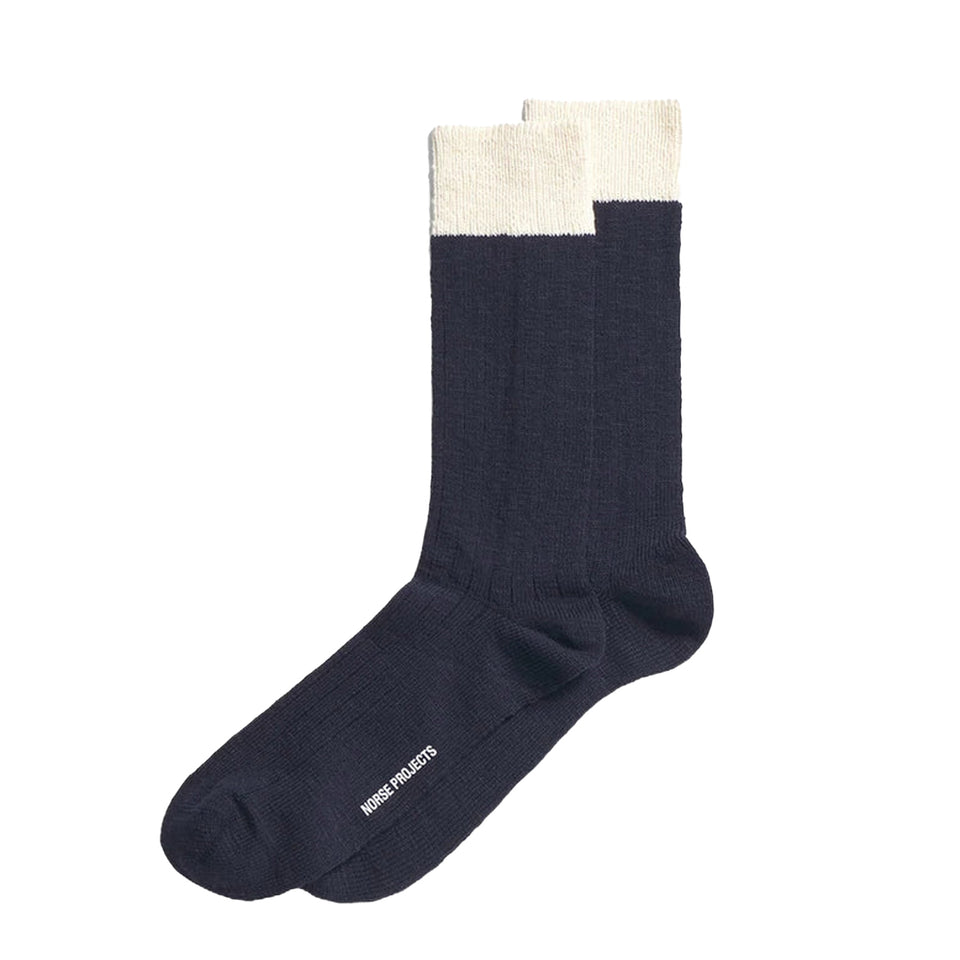 The Norse Projects Ebbe Sport Sock in Dark Navy delivers a comfortable regular fit with a compact rib structure for support. Finished with a heat transfer logo on the inside arch, it blends performance and understated style.