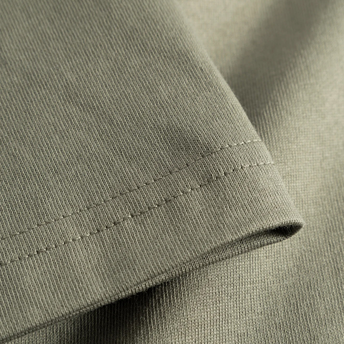 The Niels Standard T-shirt in Sediment Green is a classic T-shirt cut from midweight organic cotton cloth. It features a ribbed collar and is finished with a twin needle stitched hem and cuffs.