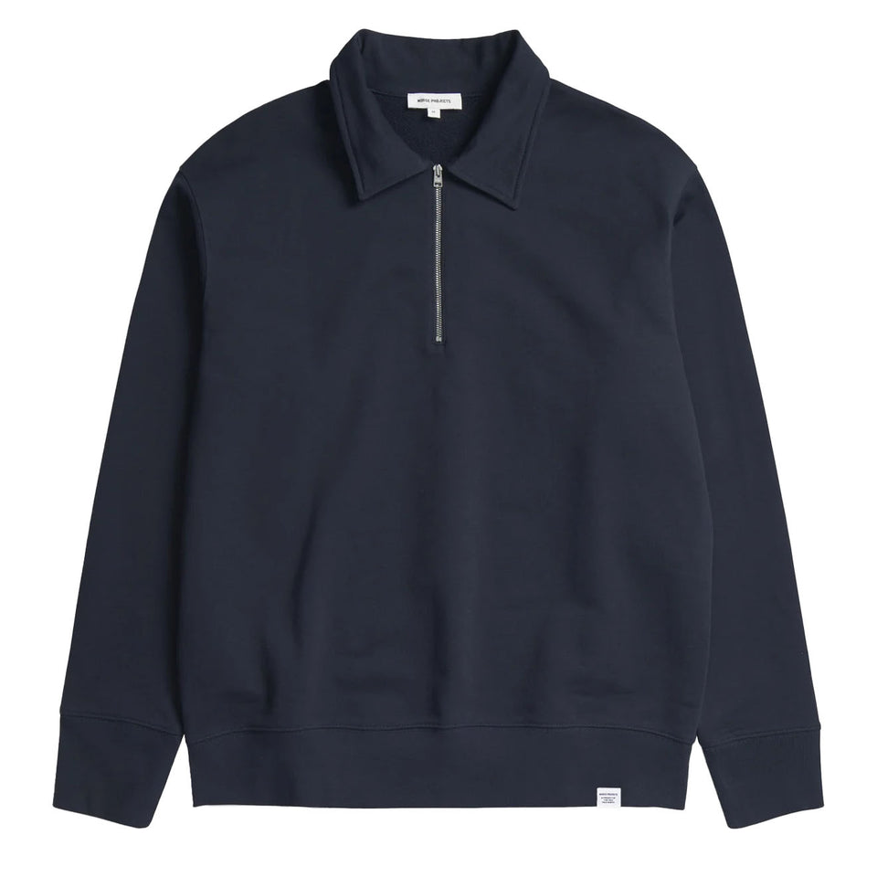 Norse Projects Ketel Relaxed Organic Half Zip Dark Navy