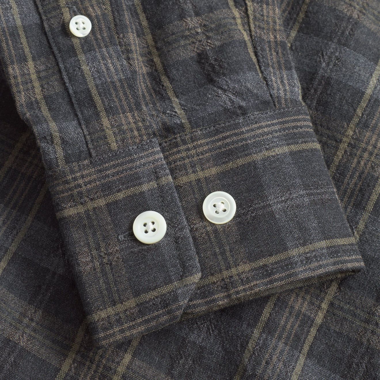 The Norse Projects Ole Oversized Wool Check Shirt in Charcoal Grey is an oversized-fitting shirt with a wider cut body. Made from a wool-blend Italian fabric with a subtle crinkled appearance, it features a chest pocket and mother-of-pearl buttons for a refined, timeless finish.