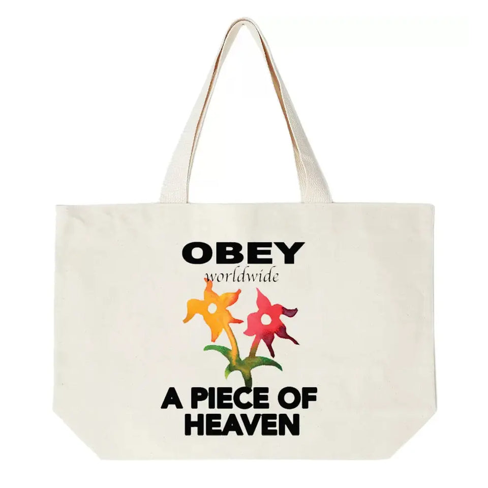Introducing the Obey A Piece of Heaven Tote Bag in Cream, a canvas of urban sophistication. This tote harmonizes style with utility, crafted for those who appreciate quality and authenticity, providing an essential accessory for those who embrace timeless fashion with a contemporary twist.