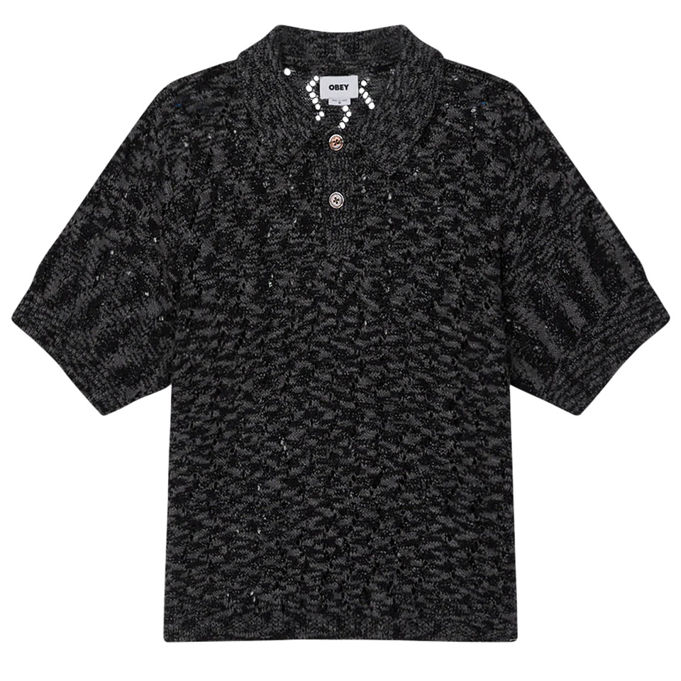The Obey Andre Polo Sweater in Black is a stylish and versatile piece made from a soft blend of cotton and nylon. Featuring a button-front placket, ribbed collar, placket, hem, and sleeves, this sweater offers added texture and a refined look. A side flag label provides subtle branding, while the relaxed fit ensures comfort and easy layering. Perfect for both casual and layered outfits, the Obey Andre Polo Sweater is an essential addition to any wardrobe, combining style and functionality with a touch of sophistication.