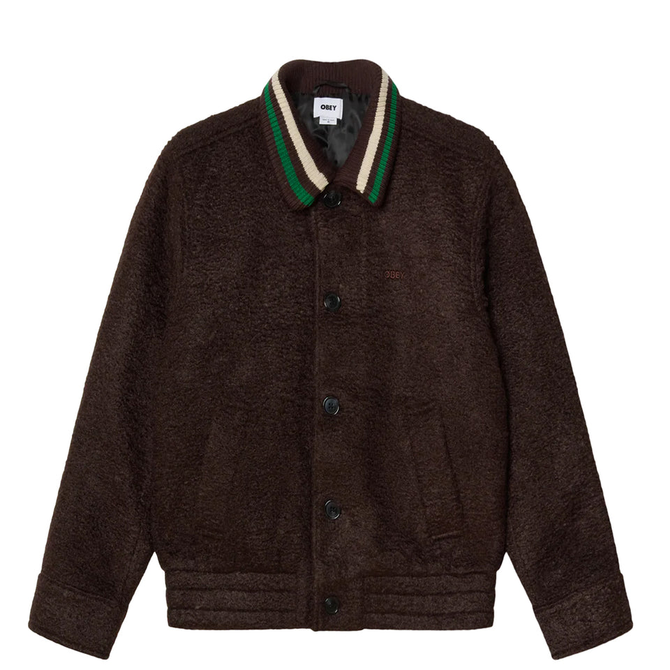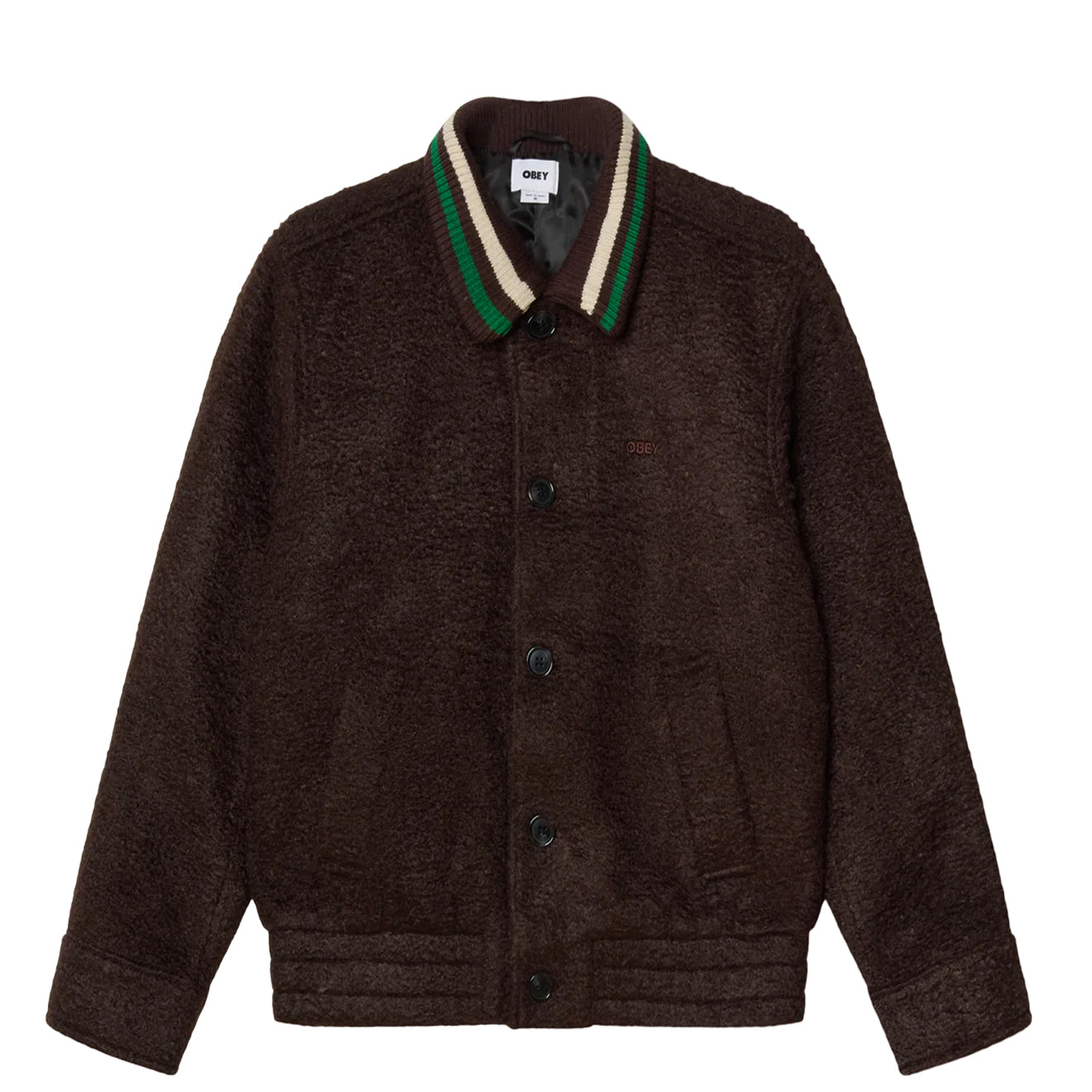 The Obey Arden Blouson Jacket in Java Brown is a relaxed-fit outer layer built for transitional weather. Featuring a ribbed sweater collar and button front closure, this jacket offers lightweight warmth with full lining and light insulation. Welt pockets provide storage, while adjustable cuffs and an elastic waist ensure a flexible, secure fit. Subtle branding finishes the understated design.