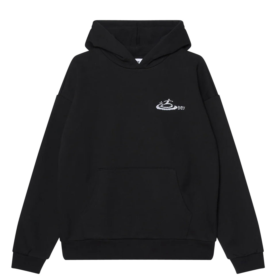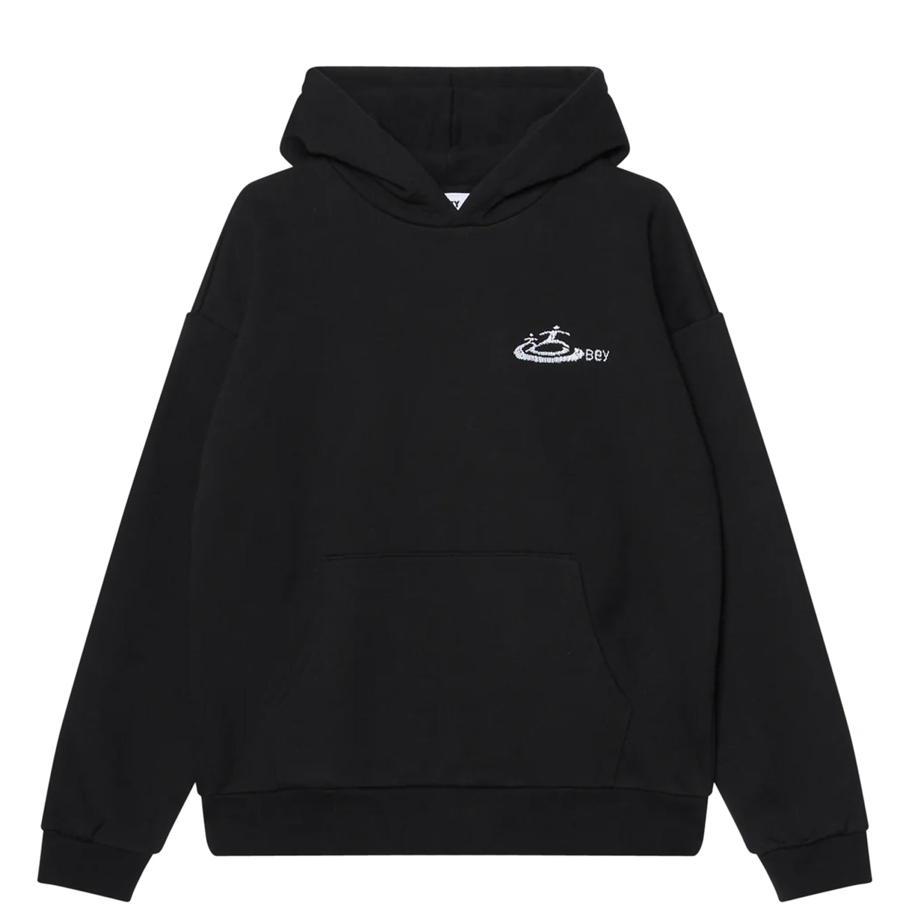 The Obey Corp Extra Heavy Hood in Black is crafted from a 16 oz heavyweight brushed fleece blend of cotton and polyester. Designed for comfort and durability, it features a front patch pocket, rib-knit cuffs and hem, and embroidery on both front and back. With its relaxed fit and premium construction, this hoodie delivers timeless streetwear style.