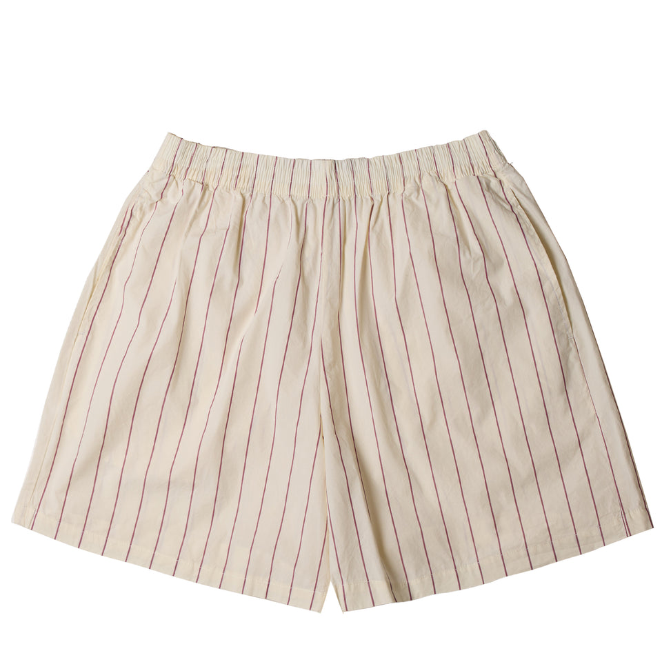 The Obey Women's Primavera Stripe Short in Tofu Multi is a relaxed-fit cotton short with a comfortable, yarn-dyed elastic waistband and interior drawcord. Featuring side seam front pockets, back welt pockets, and an Obey art label on the right back seat, these Fair Trade certified shorts combine casual style with everyday comfort. Perfect for warm-weather wear.