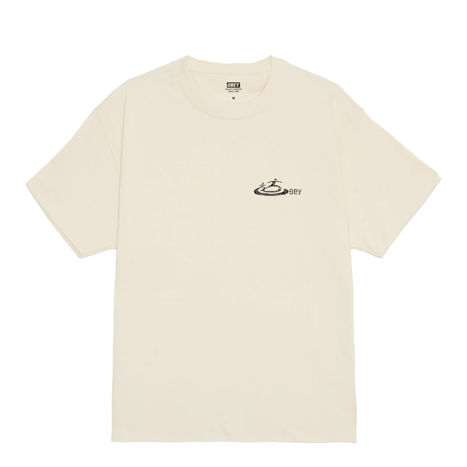 The Obey The Rhythm S/S Tee in Cream is a classic short-sleeved T-shirt featuring a printed graphic on both the front and back. Crafted from 100% cotton with a 6 oz. weight, it provides a regular fit and everyday comfort.