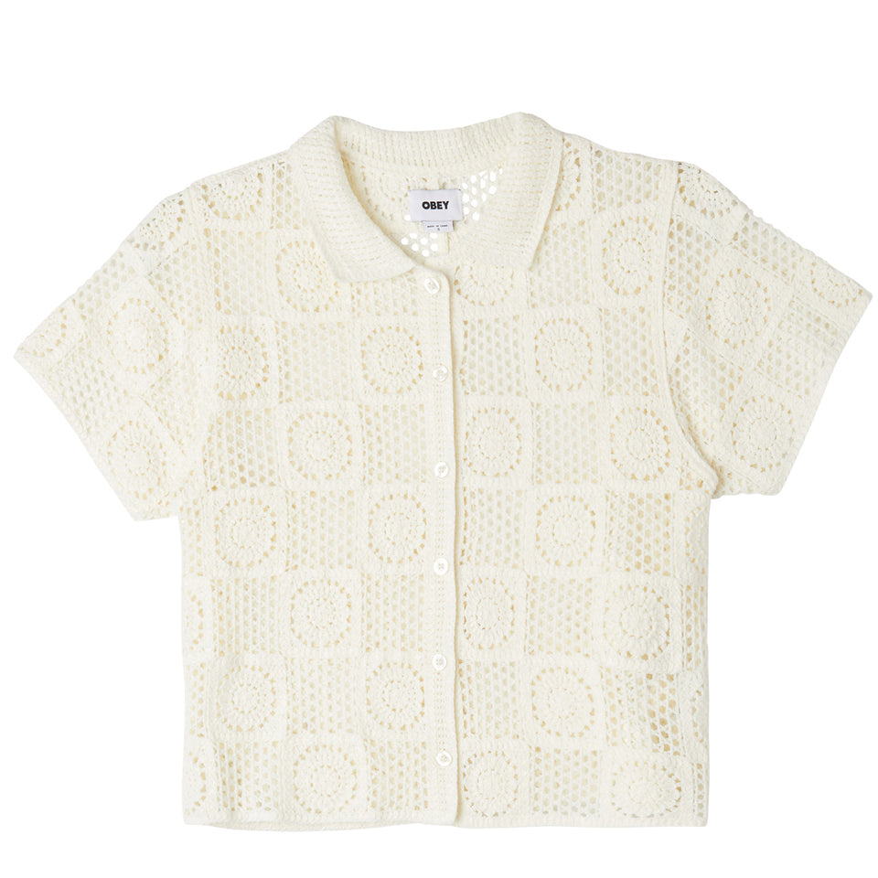 Obey Womens Agatha Crotchet Knit Sweater Unbleached