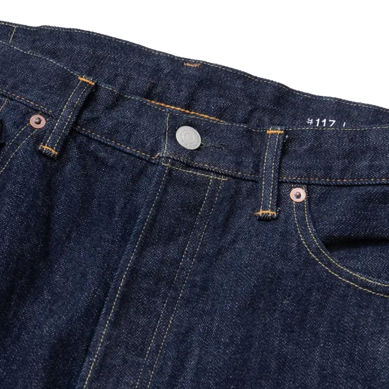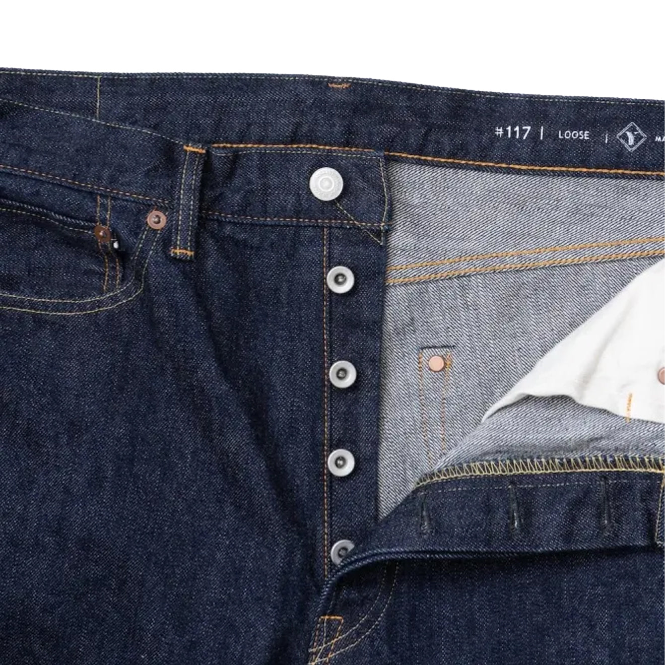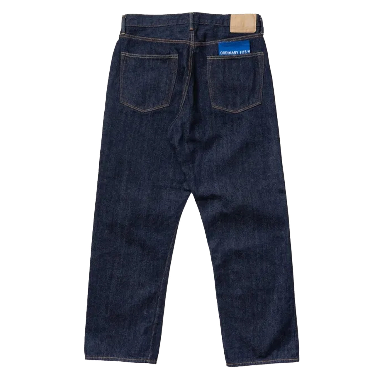 The Ordinary Fits Loose Denim Jeans One Wash Indigo are made in Japan from 100% selvedge denim. These jeans feature a loose, relaxed fit that tapers towards the hem, a rinsed indigo finish, and classic five-pocket styling with a button fly. They merge traditional workwear influences with a contemporary, comfortable fit.