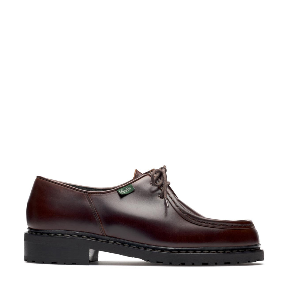 The Paraboot Michael Shoe in Lisse Ecorce, created by the second generation of the Richard-Pontvert family, is an iconic model first introduced following the birth of Michel Richard in 1945. Celebrated worldwide, it combines timeless design with versatility, adapting effortlessly to any generation and style.