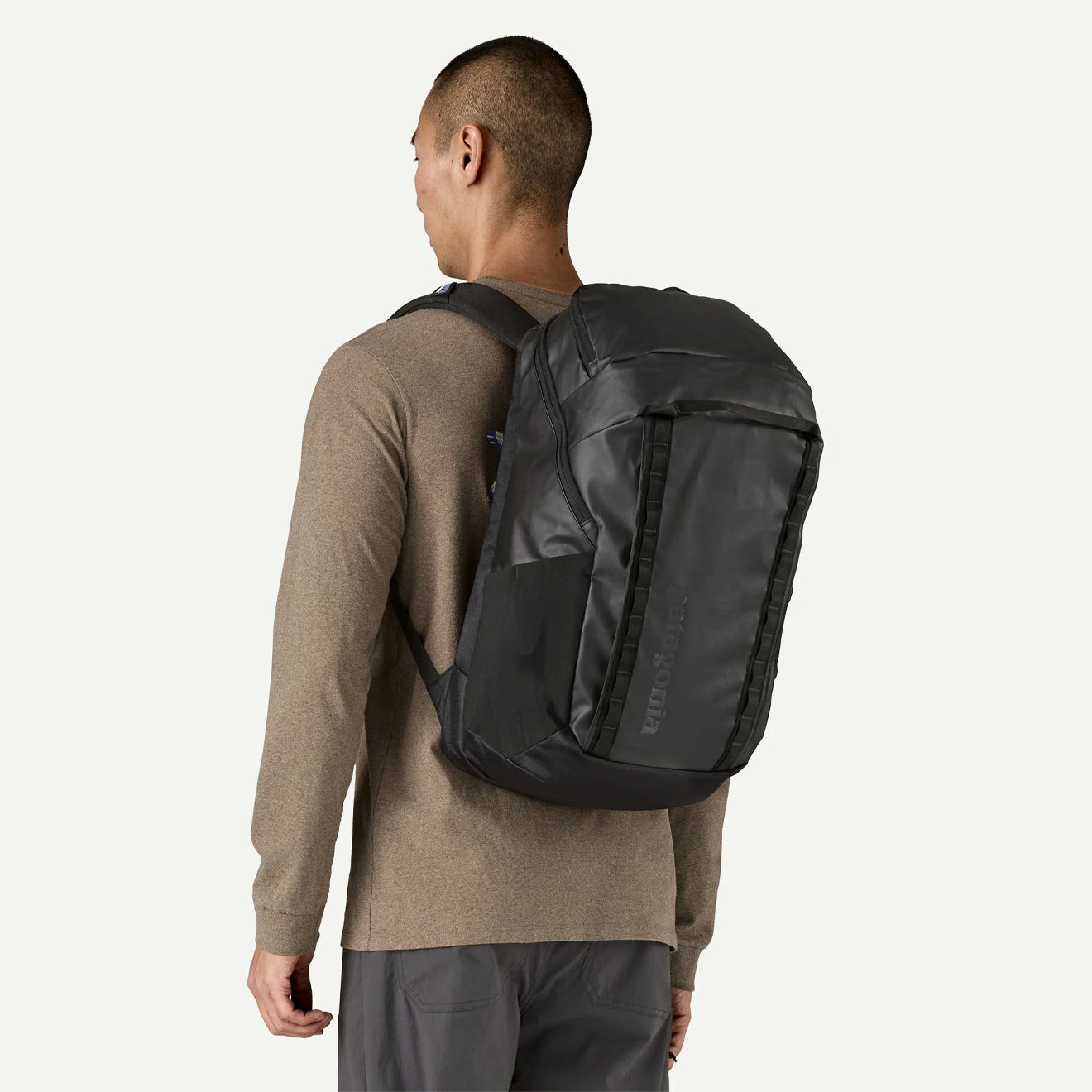 The Patagonia Black Hole Pack 32L in Black w/Black is a dependable midsize backpack built for commuting, travel, and everyday adventures. Made from 100% recycled polyester ripstop with a recycled TPU-film laminate, it’s tough, weather-resistant, and designed to protect your essentials in all conditions. With a spacious main compartment, padded laptop sleeve, and multiple stash pockets, it combines organisation with comfort thanks to a breathable back panel and padded shoulder straps. Made in a Fair Trade Certified™ factory in Vietnam.
