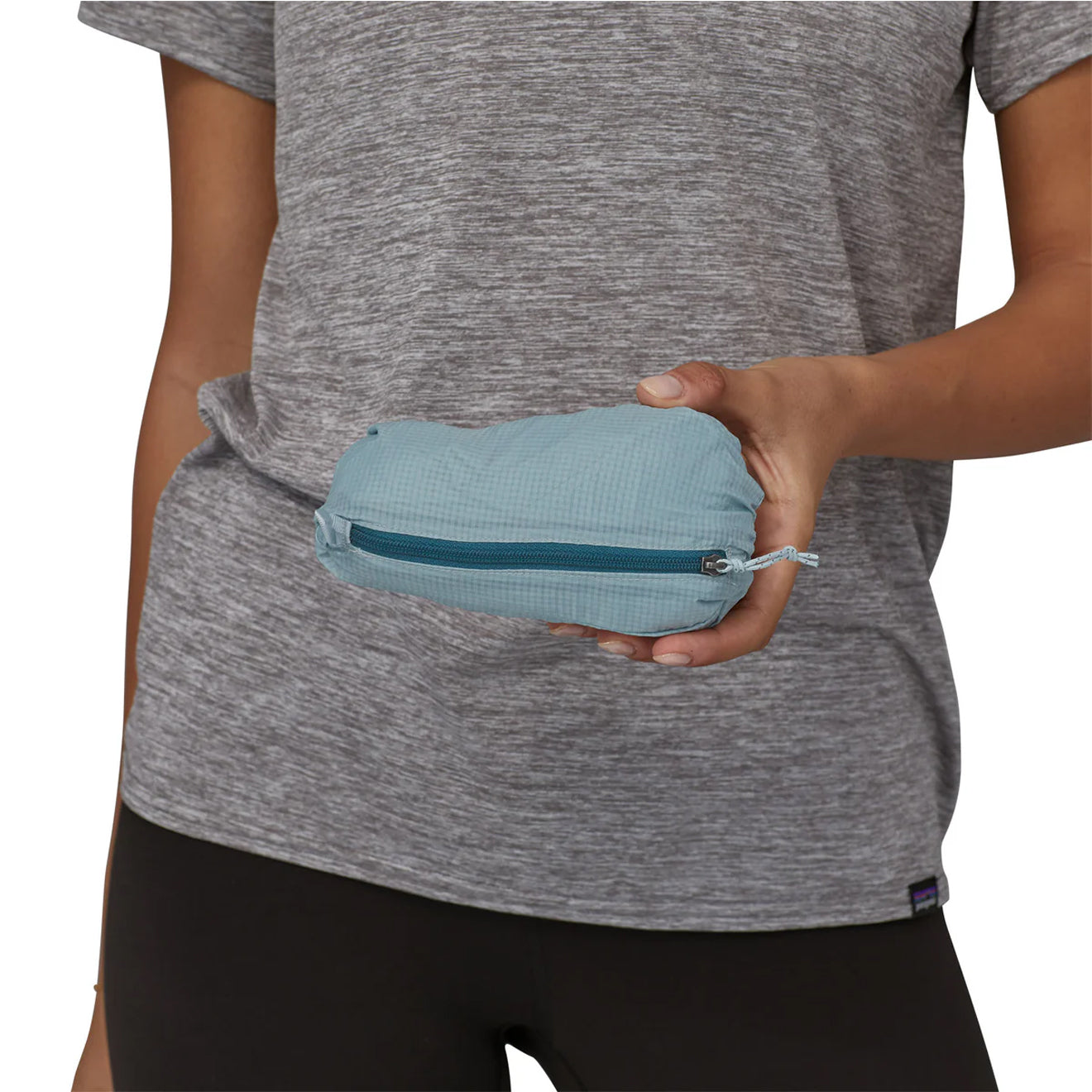 The Patagonia Womens Houdini Jacket in Sea Run and Potters Red is a lightweight, packable jacket made from 100% recycled nylon. Designed for weather-resistant protection during high-output activities, it is produced in a Fair Trade Certified™ factory for ethical manufacturing.