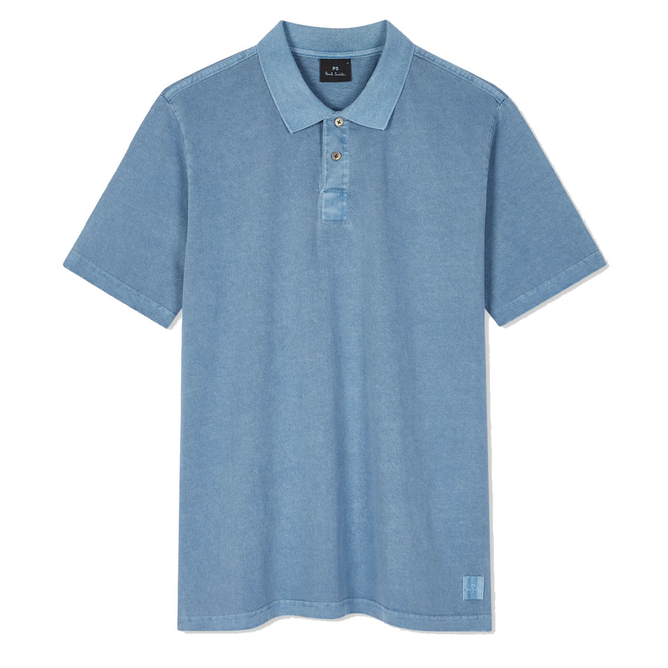 Paul Smith Acid Wash Cotton Polo Shirt Blue