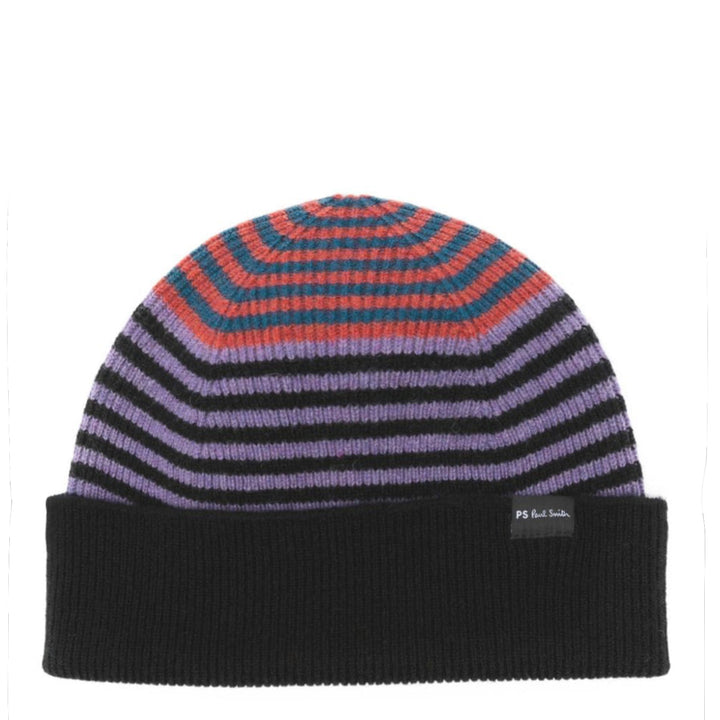 Crafted in the UK with 100% cozy wool, the dark blue beanie features a stripe pattern. Perfect for chilly weather, this hat is the ideal accessory.